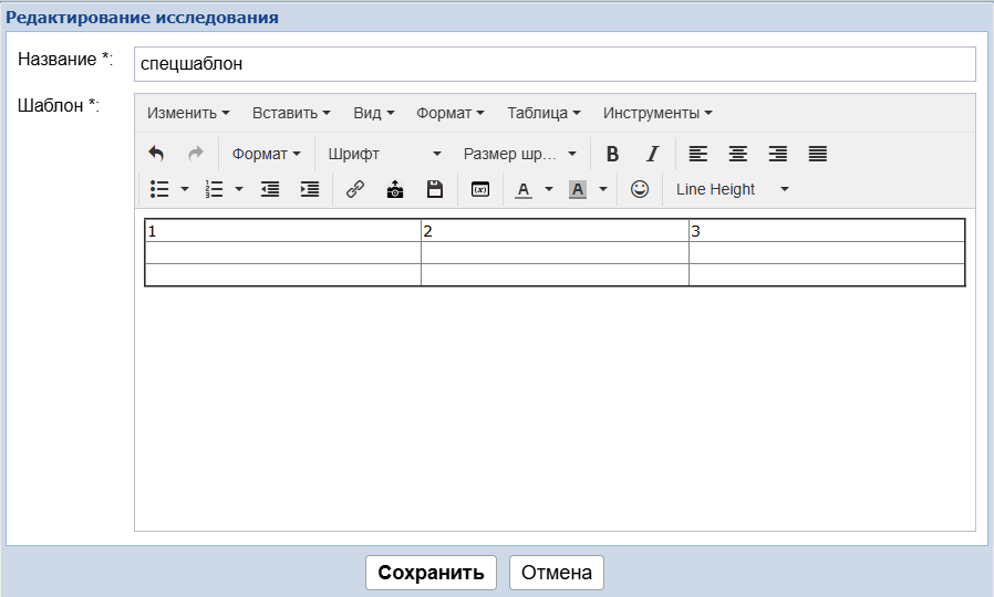 !!!Если шаблон уже использовался в медкартах, то его уже нельзя отредактировать. Нужно его скопировать и в копию внести изменения, а старое исследование деактивировать.