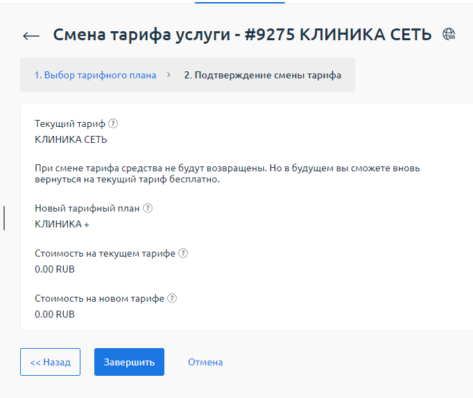При смене тарифного плана система автоматически пересчитает дату его окончания: