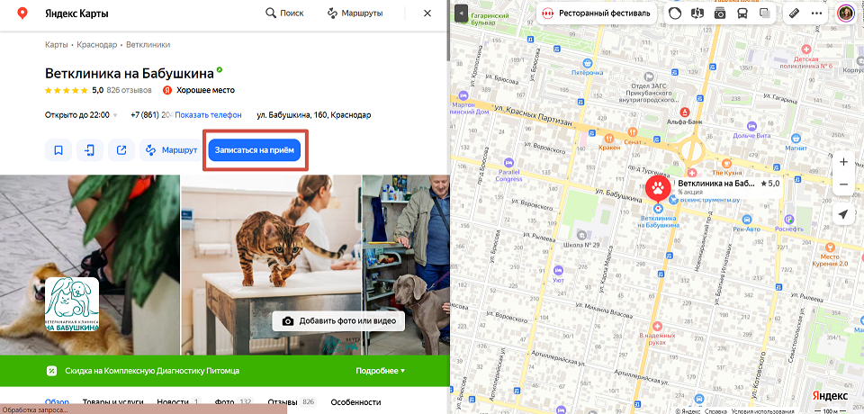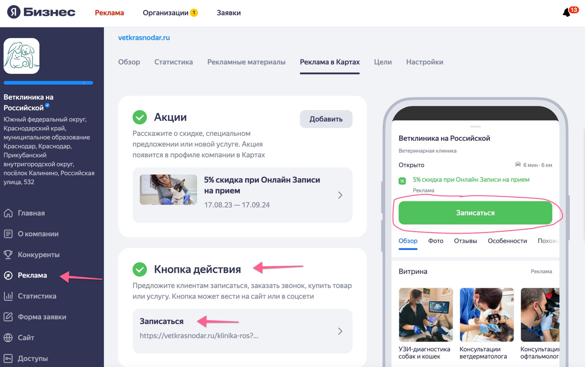 Как добавить информацию о клинике и кнопку онлайн-записи на прием в Yandex-картах.