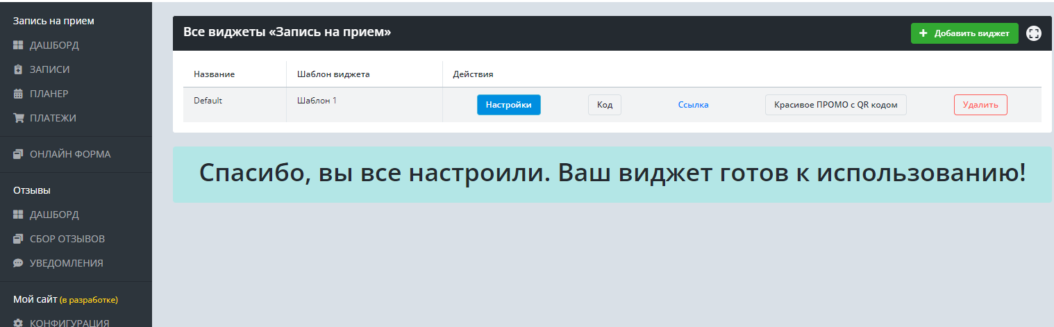 Здесь вы сможете настроить онлайн-форму для записи на прием, автоматический сбор отзывов, уведомления; добавить исполнителей, услуги, которые оказывает ваша организация, специализации.