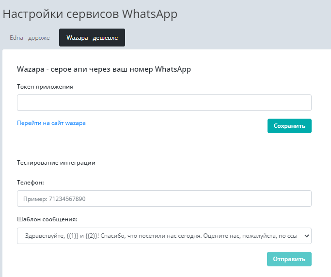 Если интеграция с сервисами отправки смс не настроена, нужно предварительно это сделать: