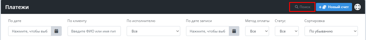 Нажмите на кнопку «Поиск», она откроет фильтр.