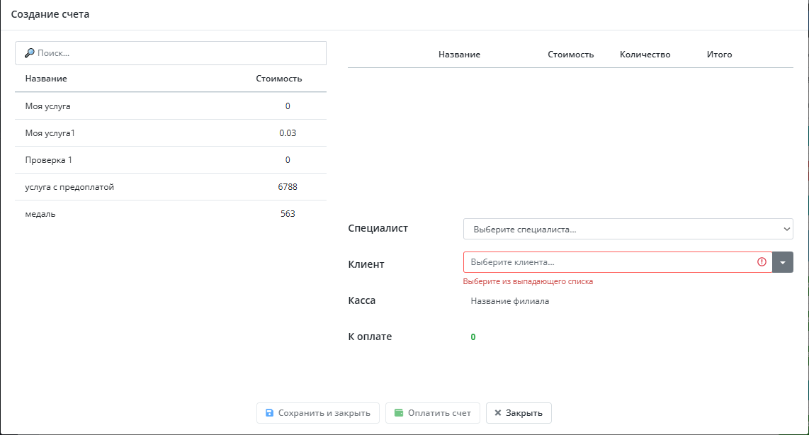 1. Сохранить и закрыть – счет сохранится со статусом Черновик. Его можно будет оплатить позже или отредактировать.