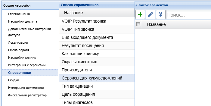 1. Откройте Настройки → Справочники → Сервисы для хук-уведомлений.