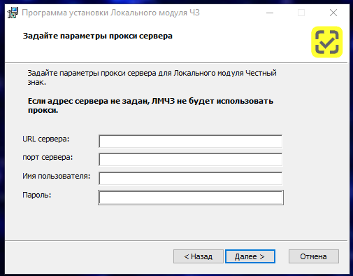 На следующей странице, если вы не используете прокси, то оставляете поля пустыми.