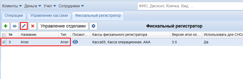 Выберите фискальный регистратор и перейдите в окно редактирования (либо создайте новый фискальный регистратор, если только начинаете с ним работу).