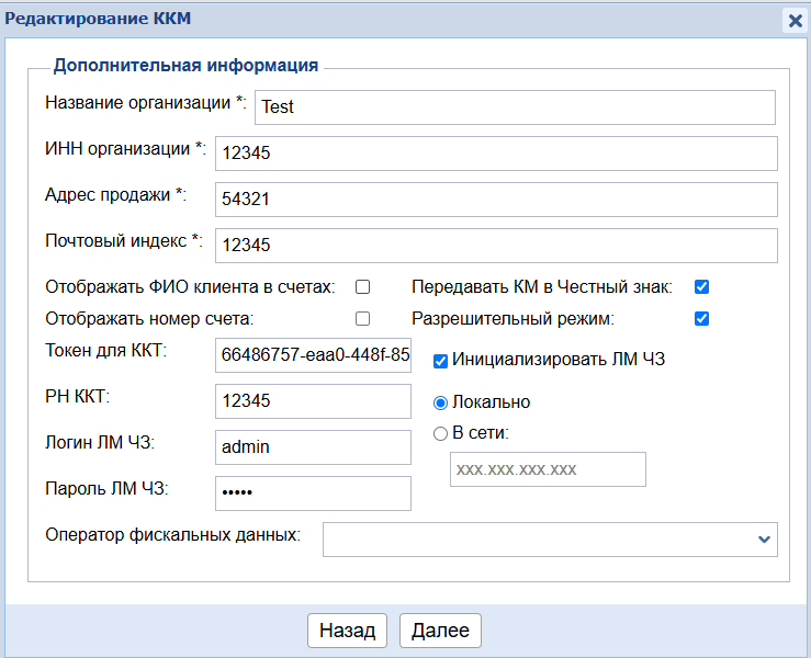 Компьютер, на который ставится ЛМ ЧЗ, должен иметь фиксированный IP-адрес в локальной сети торговой точки.