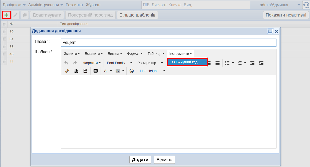 Перейдіть у Адмінка — Довідники — Друковані форми. У вкладці «Налаштування шаблонних форм» натисніть «+» для додавання нової.